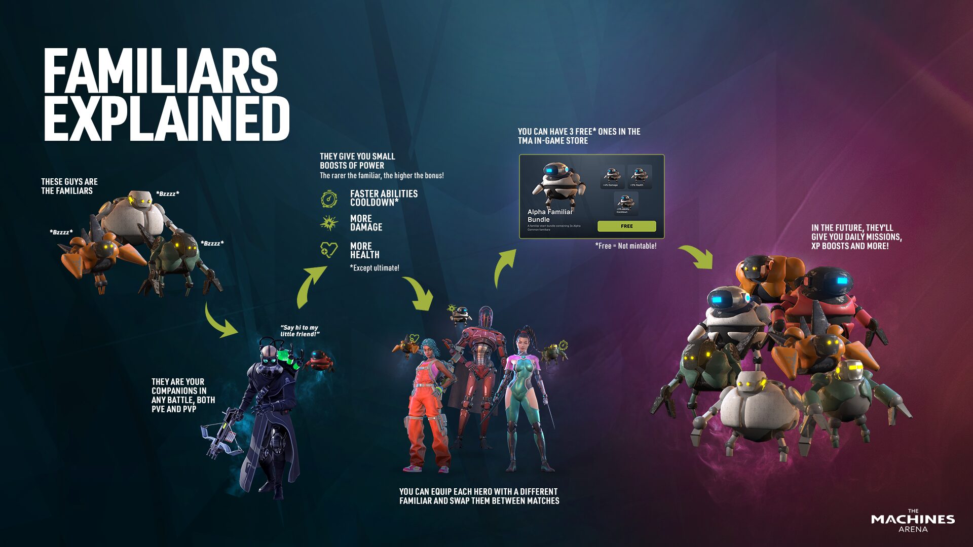 Open beta arrives in The Machines Arena on April 23rd, bringing with it game updates, new mechanical companions known as Familiars, and an opportunity to join in a future play to airdrop opportunity!
