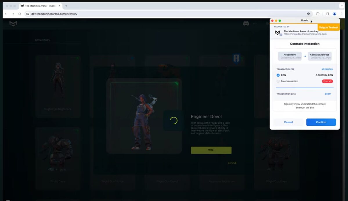 The Machines Arena was not originally planned as a blockchain game. But since their first beta release they have expanded their plans. And after a partnership with Sky Mavis, The Machines Arena now allows players to mint, buy, and sell character skins on the Ronin network.