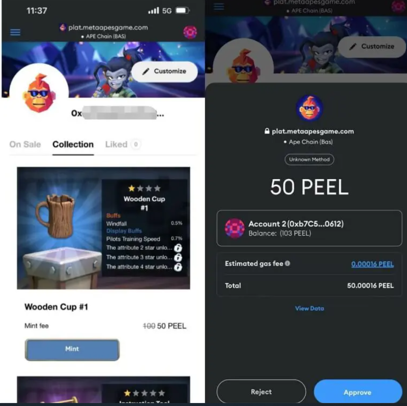 Players can mint in-game relics as NFTs on Ape Chain, which they can then own and trade. These NFT-minted Relics are transferable and tradeable on the Meta Apes marketplace. Moreover, each Meta Apes Relics costs a minting fee of 50 PEEL. After minting, players may use the Transfer token option to move the NFT Relics to another wallet.