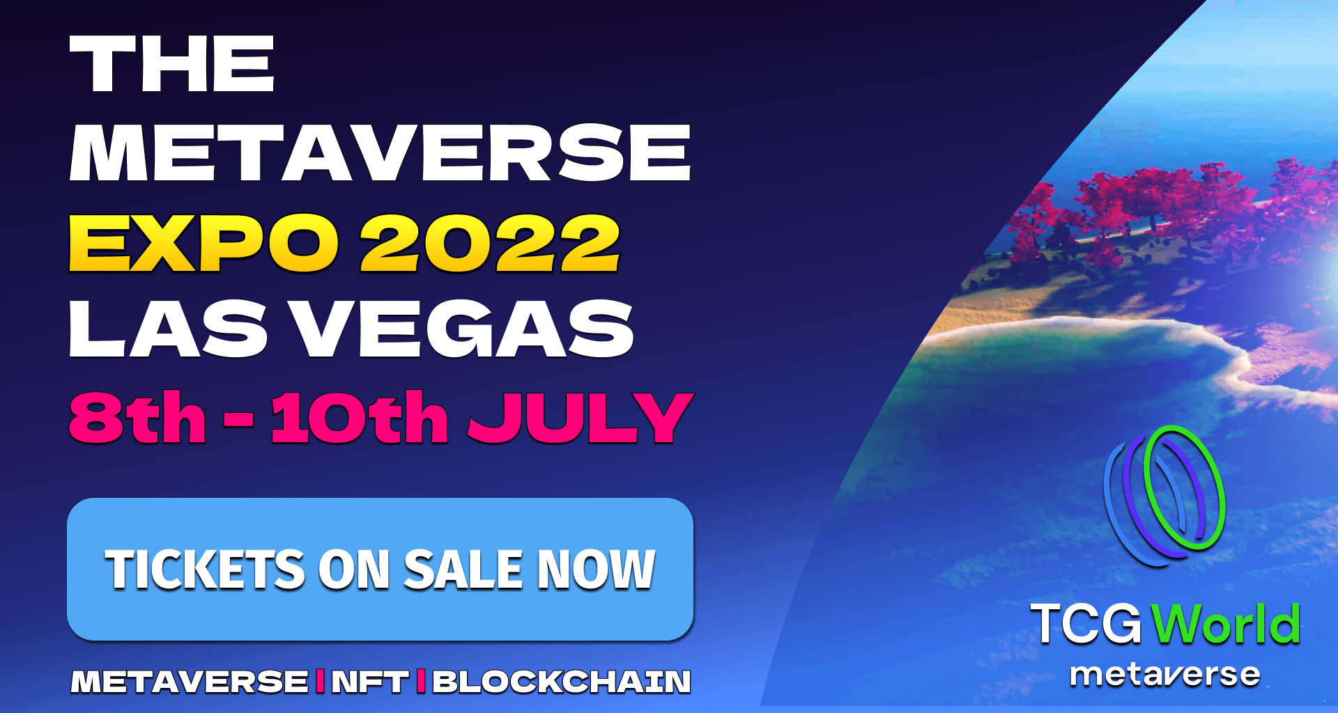 TCG World will be co-hosting The Metaverse Expo 2022, a 3 day event held at the Las Vegas Convention Center on 8th - 10th July 2022. The event will bring over 6000 visitors from around the world and will cover topics within the Metaverse, NFT, Gaming and Blockchain space.