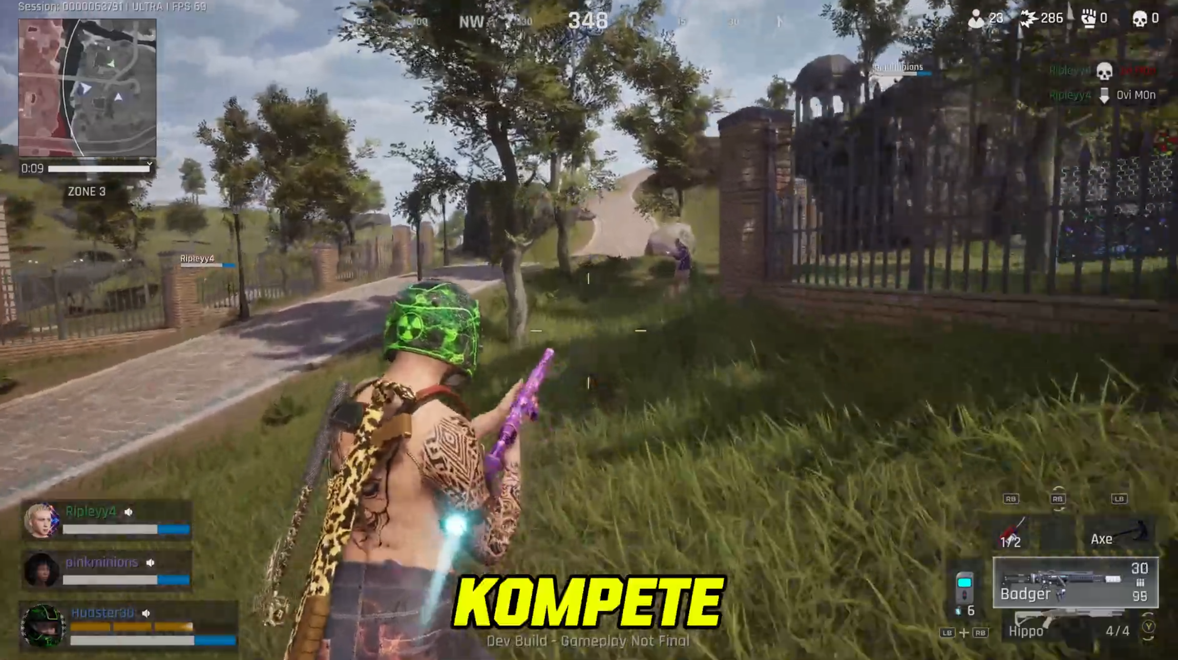 Kompete is a free-to-play, realistic multiplayer platform that offers a variety of competitive modes under one roof. Developed on Unreal Engine 5, the game includes a Blitz Royale mode where squads battle on Mahzookoo Island, alongside Kart Racing, Social Deduction, and timing-based Basketball drills. The in-game economy uses a dual-model approach featuring Voolah for fiat-based progression and the $KOMPETE token for onchain activities. Players can participate in play to earn games mechanics by converting cosmetics into NFTs through a unique "Klaim" system and trading them in the Bazaar marketplace.