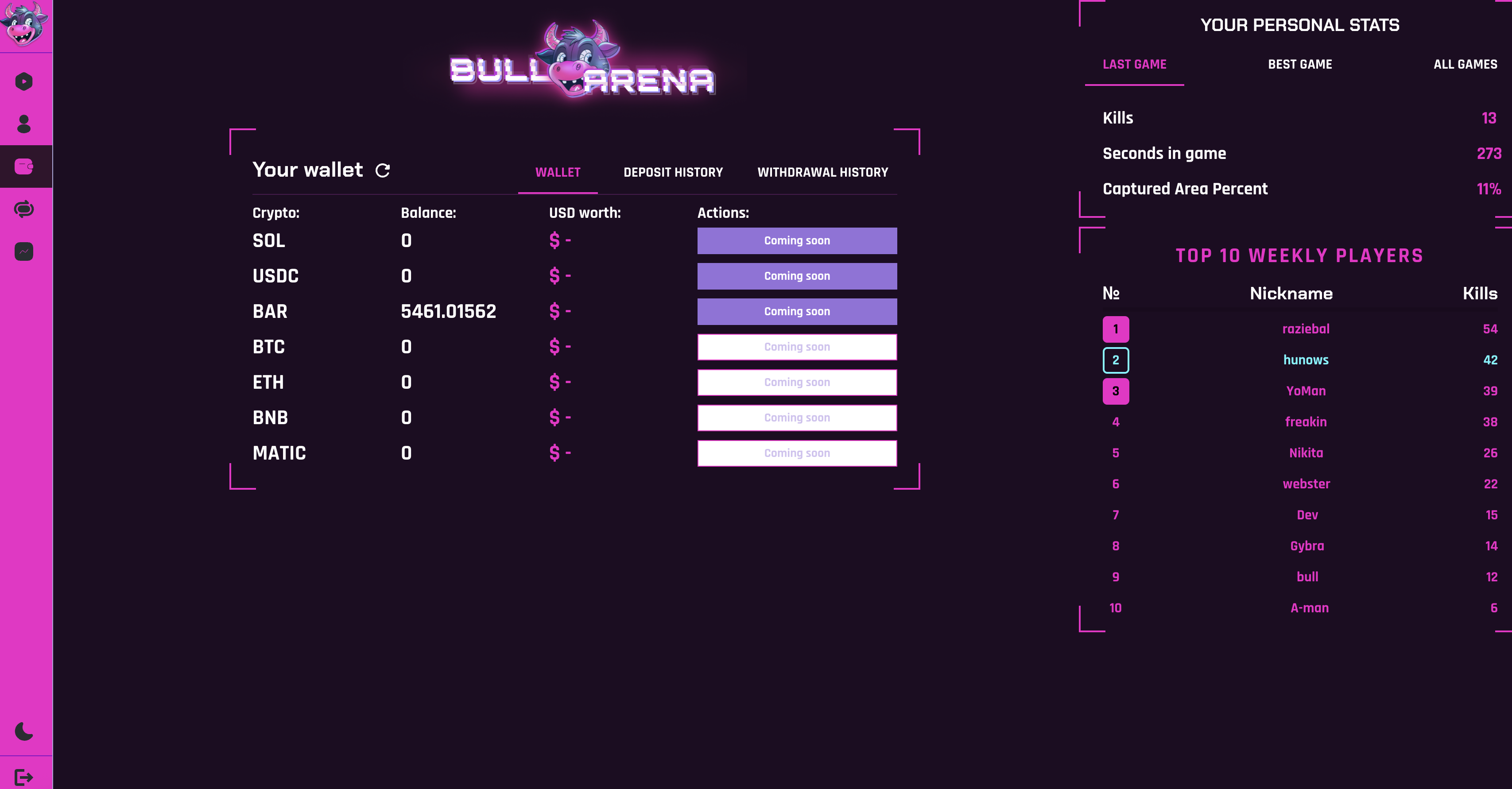 Welcome to BullArena, a Free-to-Play & Play-to-Earn crypto gaming platform, which allows users to play different skill-based [All vs All] & [1 vs 1] games, combat other players in order to win Crypto!