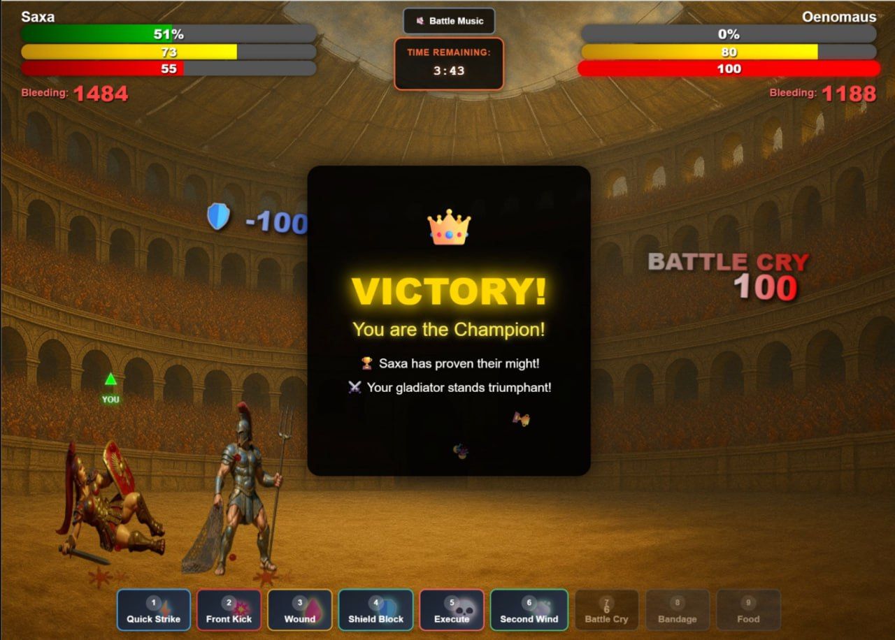 Gladiator Games - P2E ArenaSkill-Based Weekly 3000$ in Prizes 1v1 Tournaments