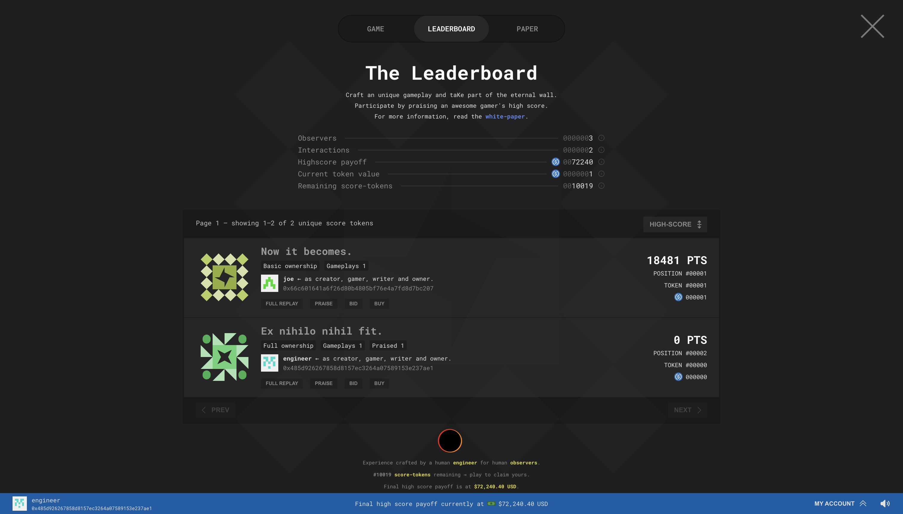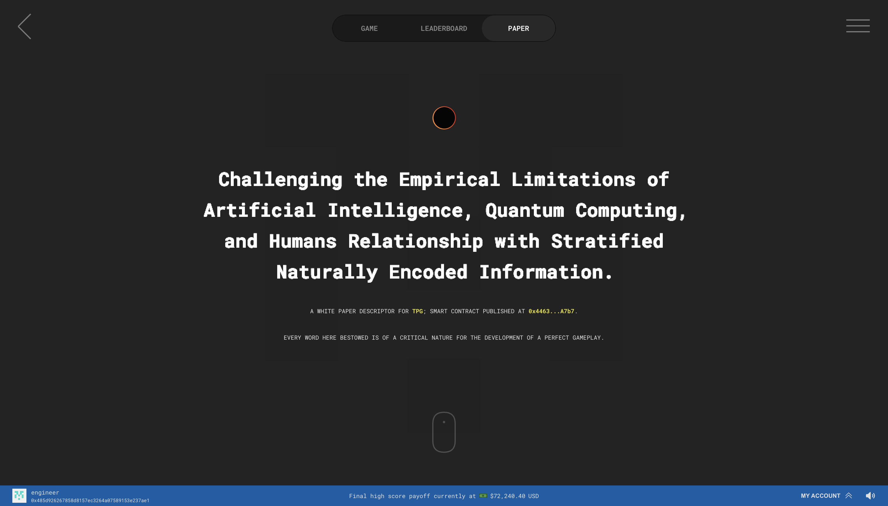 TPG is a P2E deterministic experiment in algorithmic necessity. It functions as a rigorous test of human intuition, a verifiable economic protocol, and a formal counter-argument to the probabilistic interpretation of physical reality. By codifying a perfect substance onto an immutable log, the protocol establishes a novel form of digital value derived from the pursuit of True Knowledge.