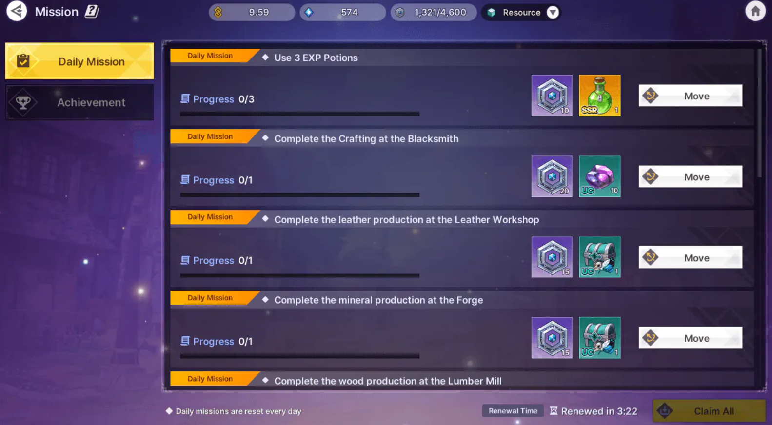 - Daily Missions and Achievements: Another quickest way to progress in Stella Fantasy is by completing daily missions and achievements. This will grant players a few Essence of Memory, which allows them to clear instances without playing them.