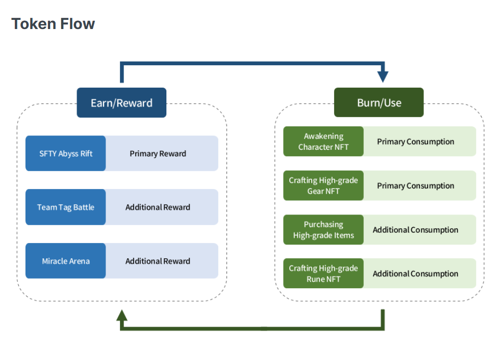 In this game, you can earn crypto and NFTs through gameplay. The RPG is mainly powered by $SFTY, the governance token of the Stella ecosystem. You can earn $SFTY by playing Unique Abyss, Team Tag Battle (seasonal competitive PvE), and Miracle Arena (Seasonal competitive PvP). The token is used to awaken NFT characters, craft high-grade gear and runes, and purchase premium NFTs or items.