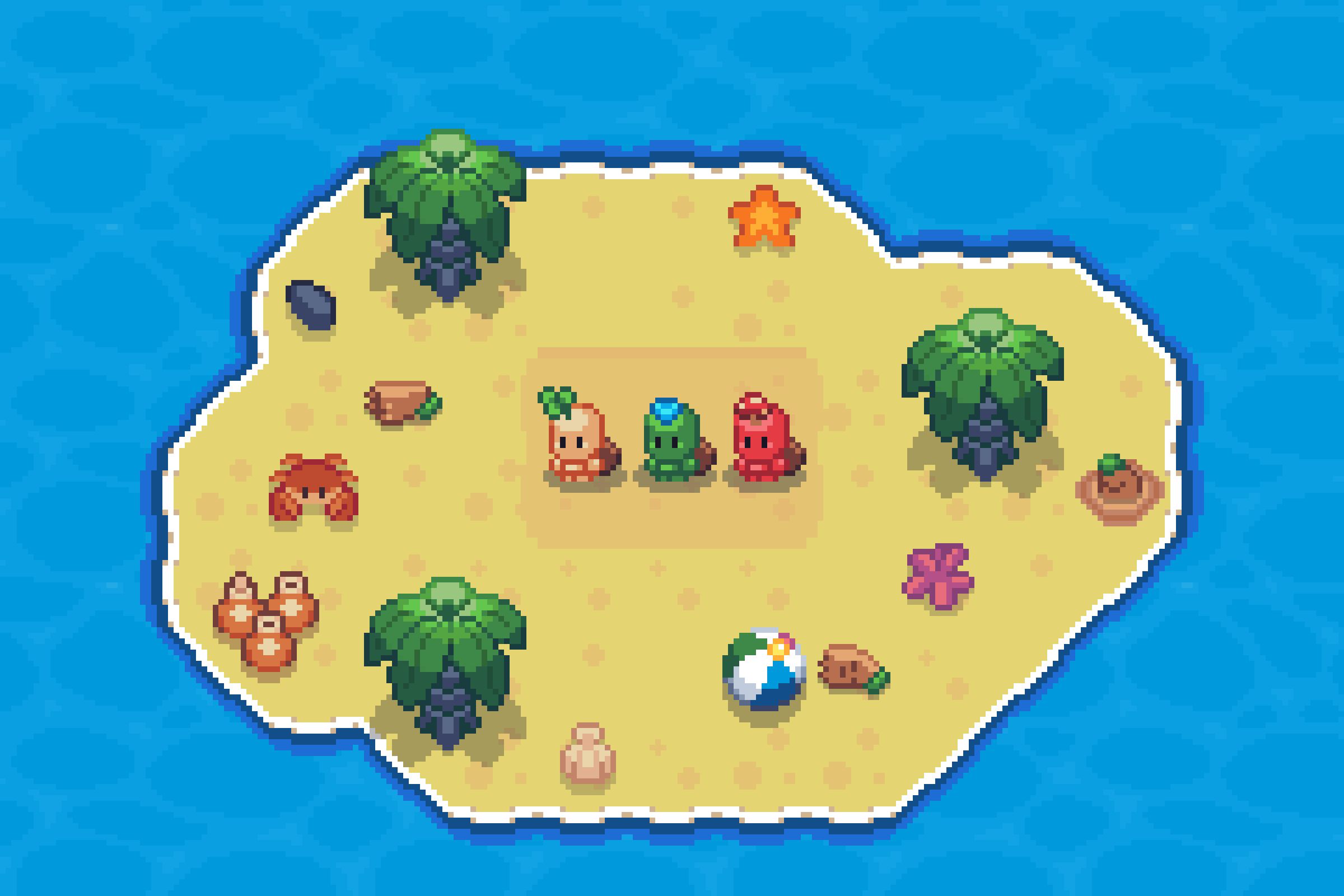 There are 10 different types of buds: Plaza Buds, Castle Buds, Cave Buds, Beach Buds, Sea Buds, Retreat Buds, Saphiro Buds, Snow Buds, Woodland Buds, Port Buds. As the names may generally apply, these in-game NFTs grow into a certain type depending on where they were planted. The above image shows Plaza Buds, while the ones below are Beach Buds.