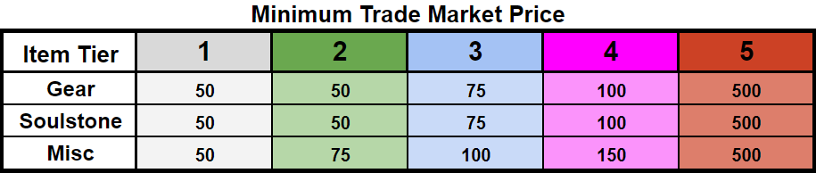The Trade Market has received an update that makes the minimum prices of items dynamic depending in the item level and category.