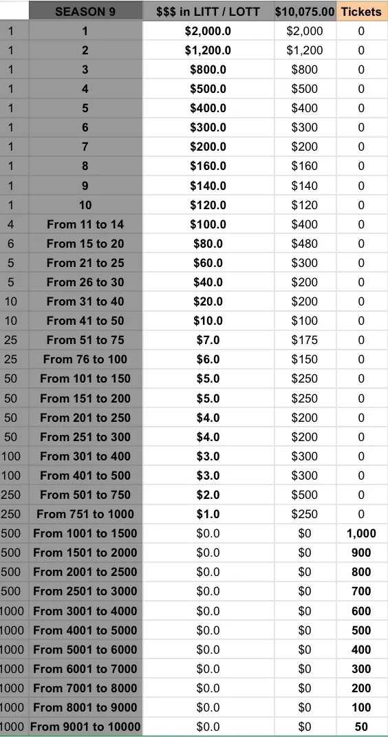 As for prizes, the top 10,000 players will be eligible for $LITT / $LOTT or Ticket rewards, depending on your rank. If you’re in the top 1000 you will be getting $LITT tokens sent to your in-game wallet, but if you’re outside that range but still in the top 10k, you’ll then receive Tickets instead.