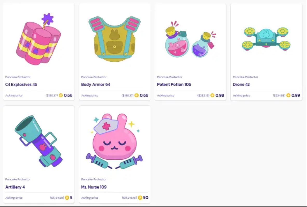 Also, NFTs play a crucial role in Pancake Protectors. Given this, players can use NFTs from PancakeSwap’s official collections, such as Pancake Bunnies and Squads, to upgrade their heroes. These NFTs not only enhance the visual appeal of the heroes but also provide major gameplay advantages. Upgraded heroes are more powerful and effective in battles, giving players an edge in defending their territories. The game also includes a Trading Center where players can trade CAKE Heroes, the only tradable heroes in the game, allowing for a dynamic marketplace within the game.