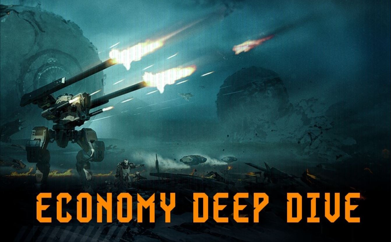 The economy is built around a loop where players complete in-game missions, accumulate Marks, and rank on leaderboards to receive a percentage of the reward pool in MCG tokens. Additionally, players can engage in a traditional free-to-play model, using fiat currency to purchase Shards, which can be converted into Credits for crafting components, repairing units, and acquiring rare items.