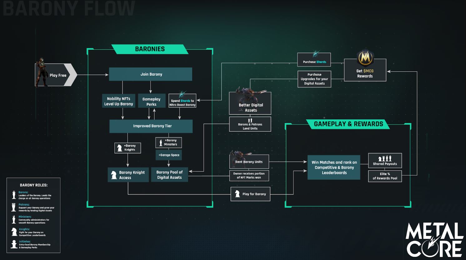 All in all, MetalCore is building an economy that not only sustains itself but also rewards players for their dedication and engagement. Whether you're a free-to-play gamer, a Premium Member seeking exclusive rewards, or part of a Barony looking to grow, MetalCore's ecosystem provides true utility and engagement.