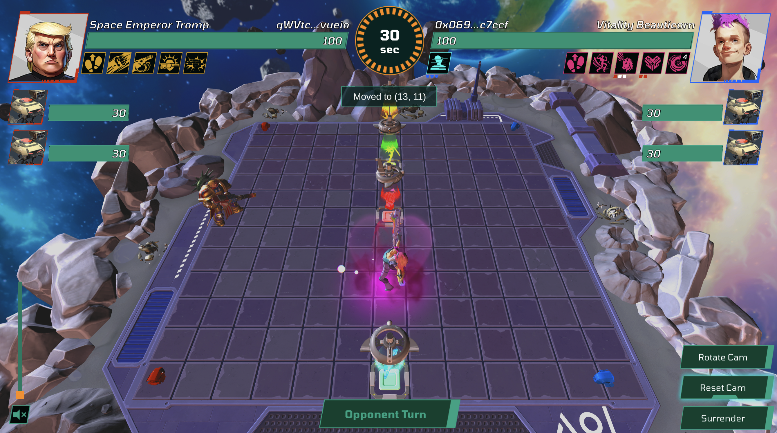 Stargrid Battle Tactics is a fully on-chain, turn-based strategy game set in a sci-fi arena. Players engage in 1v1 matches, selecting characters with unique abilities and placing them on a grid-based battlefield. Each turn allows for movement, attacks, or buffs, creating a layered strategic experience.
